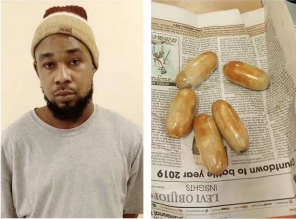 Ebuka was caught with five pellets of heroin weighing 250grams, hidden in his anus.
