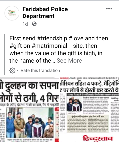 Basant Kumar, station house officer of Faridabad cyber police station, said that the suspects used to tell victims that they would get precious gifts as a token of friendship or would propose them for marriage.