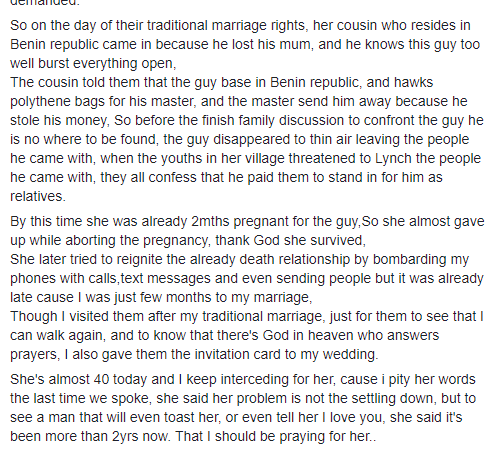 A Nigerian man who took a walk down the memory lane, has narrated how his fiancee dumped him after an accident that nearly crippled him. According to the Nigerian man, his fiance dumped him after the accident which occurred two weeks to their traditional wedding.