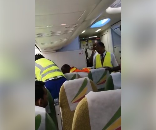 There was a mild drama on board a plane between a Nigerian man and Ethiopian airline officials which caused flight delay. According to Facebook user James Singini, the incident allegedly occurred at Kamuzu International Airport (KIA) in Malawi.