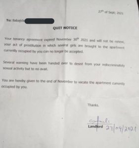 According to him, the landlord accused him of indulging in “pr*stitution” and bringing too many girls to his apartment.