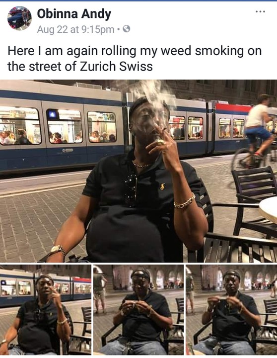 A Nigerian named Obinna took to Facebook to share photos of him smoking weed on the street of Swiss and wrote….