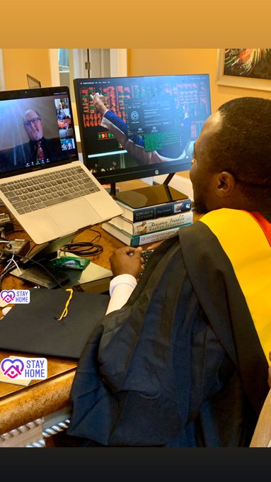 Sharing photos from his graduation ceremony, he wrote: “Class of 2020 graduating… on Zoom.”