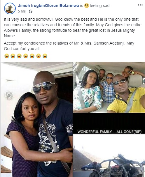 “It is very sad and sorrowful. God know the best and He is the only one that can console the relatives and friends of this family. May God gives the entire Alowe’s Family, the strong fortitude to bear the great lost in Jesus Mighty Name.
