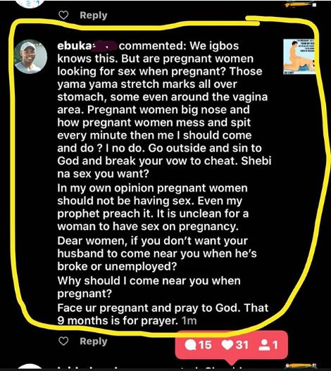 Relationship adviser and blogger Joro Olumofin has shared the views of men opposed to sleeping with their pregnant wives.