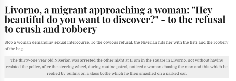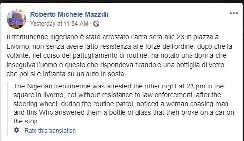 A 31-year-old Nigerian man has been arrested by police authorities in Livorno, a city in Italy, after attacking and robbing a lady.