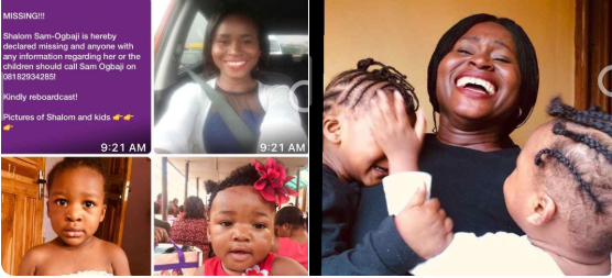 A Nigerian mum, Shalom Sam-Ogbaji and her three kids have been declared missing in Lagos.