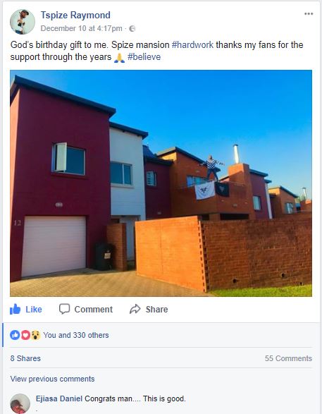 Staunch Nigerian Music producer Tspize,has bought himself a big mansion on his birthday.