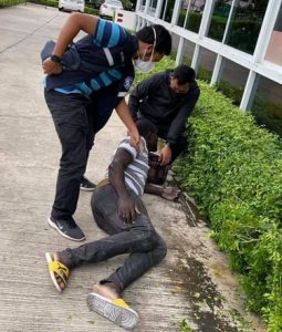 Robinson Ibuka Ade was given medical treatment for his fall, which he survived without serious injuries, according to police.