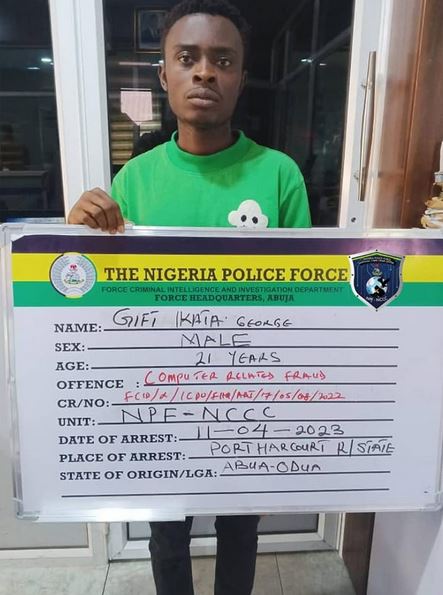 The suspect, George Gift Ikata was arrested in Port Harcourt, Rivers State, for creating a fraudulent platform used to defraud foreigners of thousands of dollars.