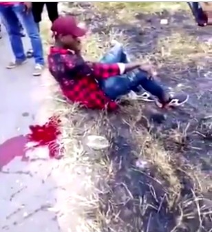 The remaining passenger come down to assist the guy to stop the blood rushing from his leg, the policeman went to him and shout at him again instead of helping him to stop the blood.