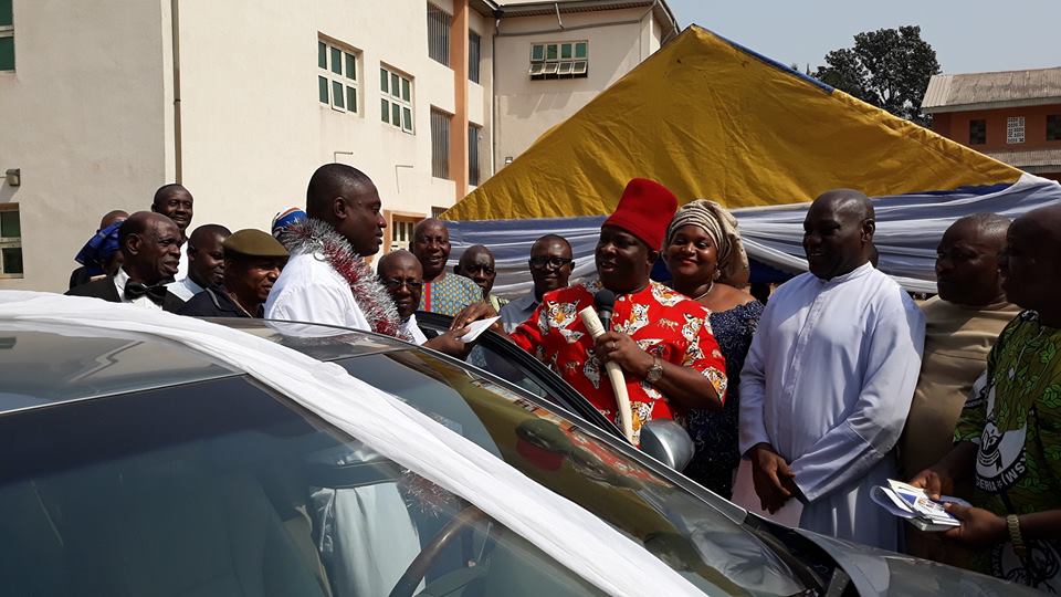 The Senator-Elect for Anambra Central Senatorial District, Chief Sir (Dr) Victor Umeh on Sunday handed over a new vehicle to the newly ordained priest, Rev Fr. Peter Ikeatuegwu. He also presented a cash gift to Rev. Monk Chukwuma Onyekaonwu, who did his final profession; both are indigenes of Aguluzigbo Community in Anaocha Local Government Area of Anambra State.