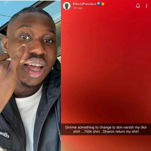 The singer took his Snapchat to call out the lady named Sharon who has converted his Dior shirt said to be worth N750,000.