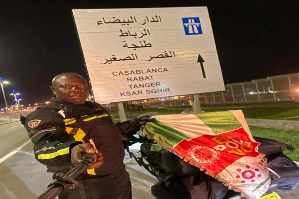 Kunle Adeyanju who began his journey on April 19, was spotted taking a selfie in Casablanca, Morocco.