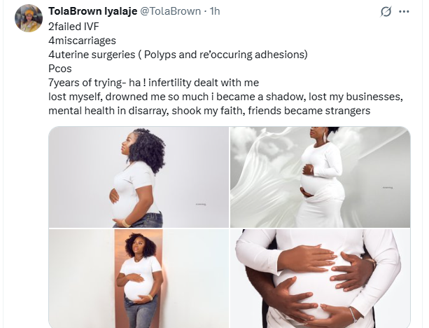 A Nigerian woman, TolaBrown Iyalaje, has shared her journey to motherhood after struggling with infertility.