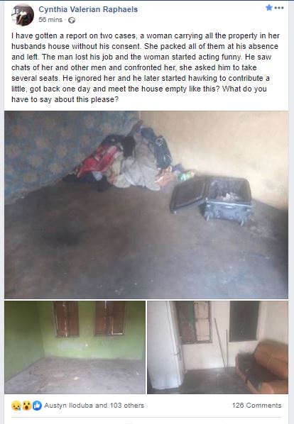 He ignored her and he later started hawking to contribute a little, got back one day and meet the house empty like this? What do you have to say about this please?”