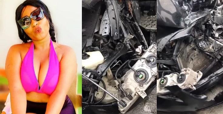However, Poshnicki whose real name is Abidemi Abiodun, was left teary after her car was crushed by the trailer.