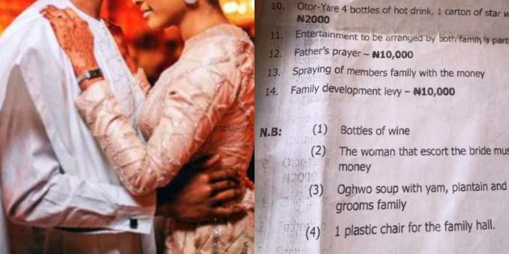 “I was cleaning our bedroom this morning when I found the Marriage List my Family gave to my Husband. Truth be told, Urhobo Marriage Bride Price List is the most budget friendly list I have ever seen,” she wrote in a Facebook post on Thursday.