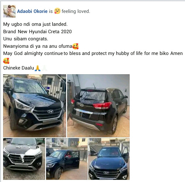 A Nigerian woman, Adaobi Okorie has thanked her husband for surprising her with a car gift.
