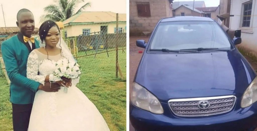 A newly wedded Nigerian woman gifted her husband, Oluwanife Damilare a brand new car at their wedding.