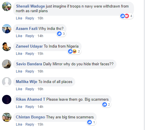 Investigations revealed that the Nigerians aged between 26 and 42 while the Sri Lankans who were residents of Pesalai area in Mannar are aged 20 and 23.
