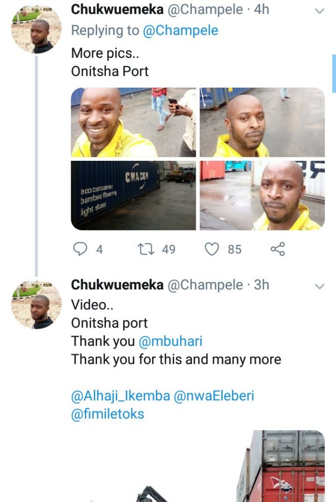 According to presidential aide, Tolu Ogunlesi: “The Plan is to move containers from Lagos & Onne Ports to Onitsha by barge. For now I believe what’s being done is testing. You need to do a pilot first, assess efficiency, do troubleshooting etc, before you roll out full operations. But if it works as planned it’s gon be a BFD!!”