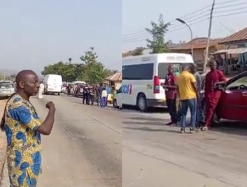 “Everybody see what’s happening here. We’re all stuck here. From here, no movement. We’ve been stranded for more than three hours. Kidnappers have taken over the road. We don’t know what to do, we don’t know where to go,” he said.