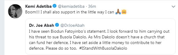 Dr. Joe Abah starts a donation scheme to help Busola Dakolo in her court case against the Senior Pastor of COZA church, Pastor Biodun Fatoyinbo following his threats to sue her.