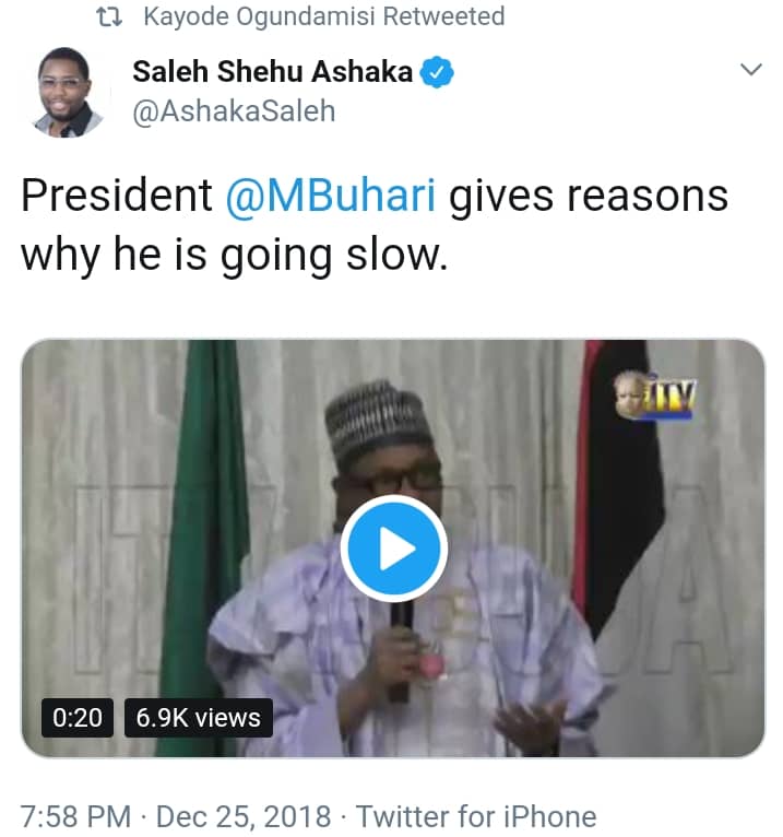 Here is the moment President Muhammadu Buhari said ‘they call me Baba Go slow’ as he tries to explain why he is going slow in terms of his administration.