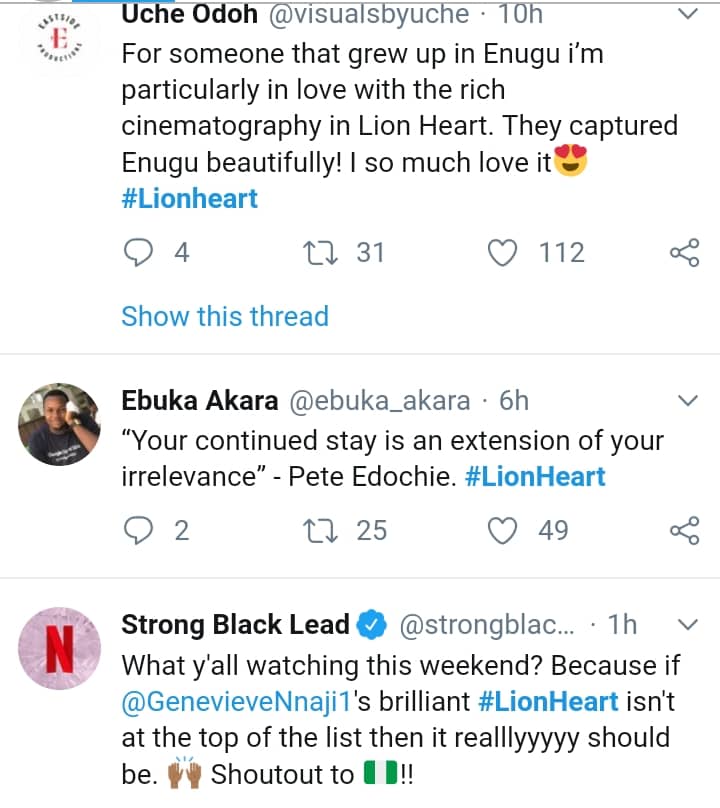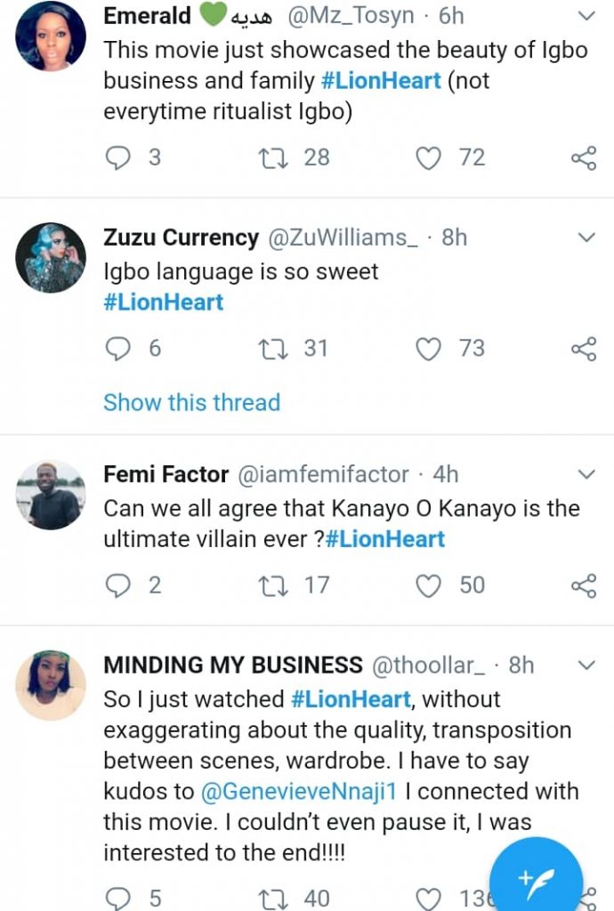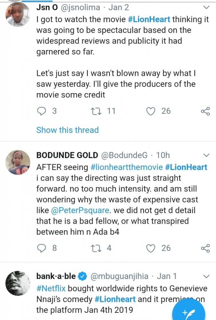 Nigerians that have seen the movie are giving their reviews. Majority are of the opinion that Genevieve Nnaji‘s ‘Lionheart’ is underrated.