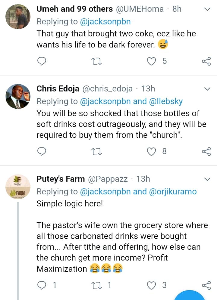 Jackson Ude shared this video of a pastor anointing members with soft drink.