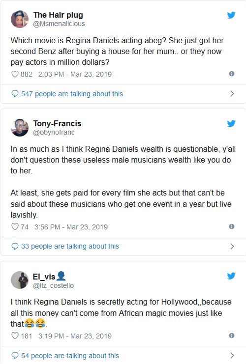 While a lot of Nigerians celebrate her success, many others are questioning are source of income and how many movies she’s actually featured in.