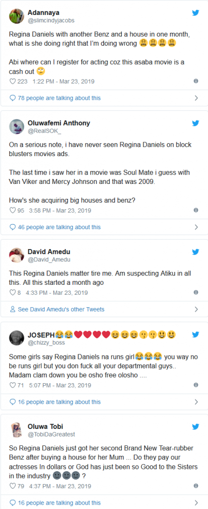 19-year old Nigerian actress, Regina Daniels is now a trending topic on social media after showing off her second Benz and getting her mum a house all in a space of 4-weeks.