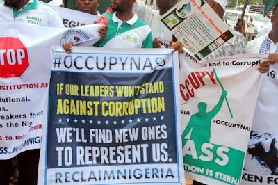 A coalition of civil rights group in Nigeria are presently staging a protest at the National Assembly Abuja where they are demanding for the immediate resignation of Senate President Bukola Saraki who is facing trial at the Code of Conduct Tribunal for alleged false declaration of assets.