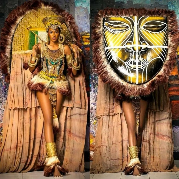 For the National Costume segment of the competition, Maristella Okpala wore an outfit inspired by the ‘Mmanwa’ masquerade from Southeastern Nigeria.