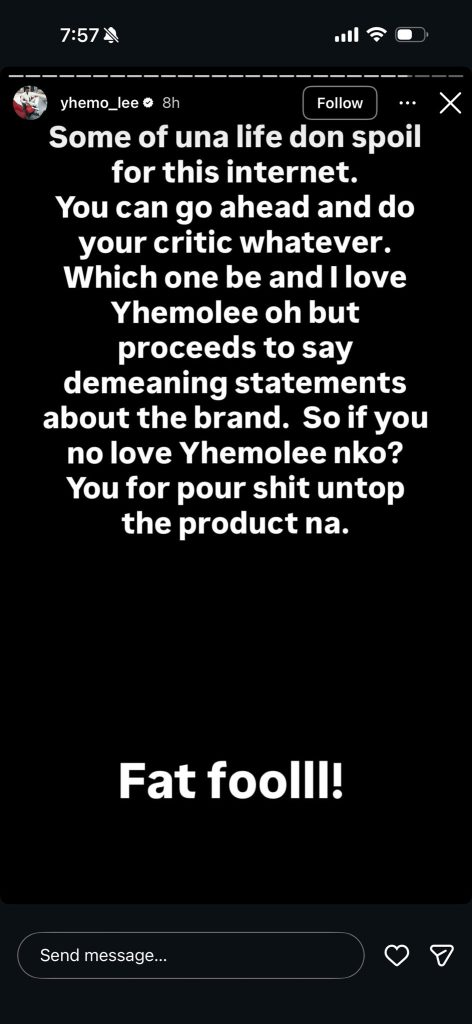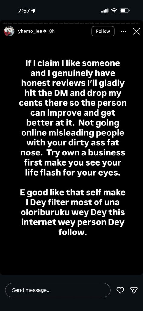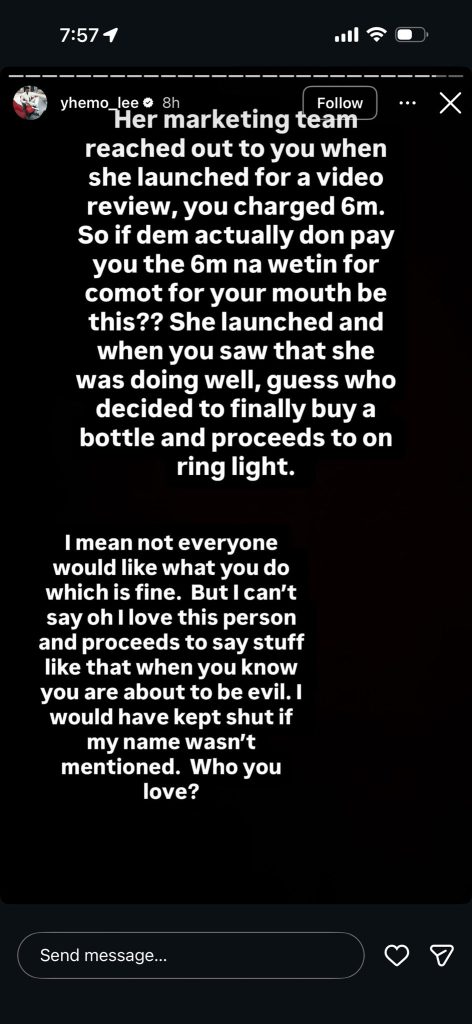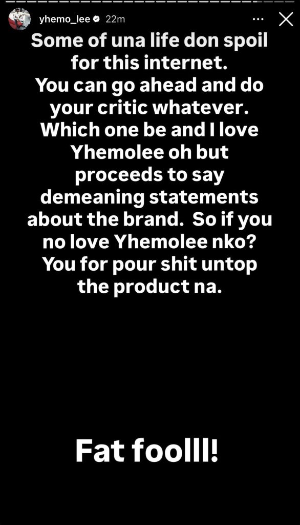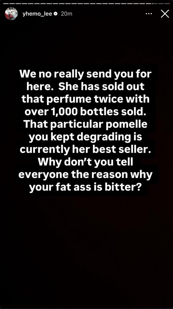 In a series of heated posts, Yhemolee accused Opeyemi of pretending to like him while making what he described as demeaning and unnecessary comments about the perfume. He questioned the logic of saying “I love Yhemolee” and then going ahead to rubbish a product tied to his household.