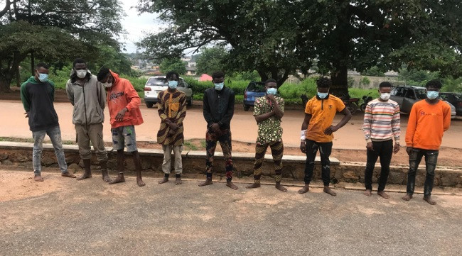 The suspects were identified as Ayinde Kehinde (23), Bolaji Owodunni (27), Adedeji Abdullahi (23), Folaranmi Babatunde (26), Omiwinde Oyekunle (19), Olayemi Quadri (23), Olafemi Oyewole (33), Olamide Joshua (21) and Toheeb Bello (25).