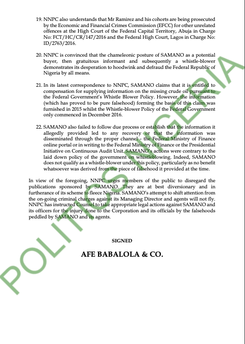 Below is a legal document from Afe Babalola & Co, made available to POLITICS NIGERIA;