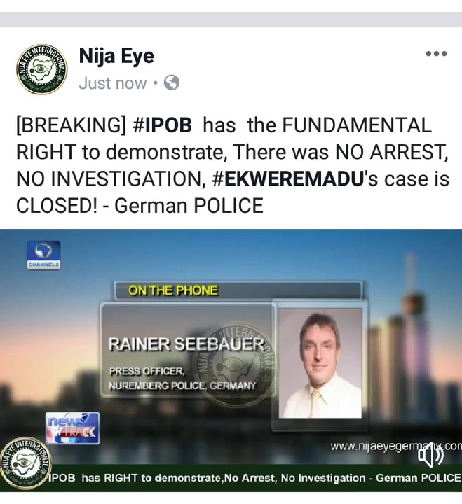 IPOB has the FUNDAMENTAL RIGHT to demonstrate, There was NO ARREST, NO INVESTIGATION, #EKWEREMADU’s case is CLOSED! – German POLICE
