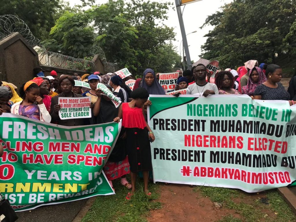 The protest currently taking place in Abuja, is being co-ordinated by groups loyal to President Buhari, including members of the Buhari Media Organization (BMO).