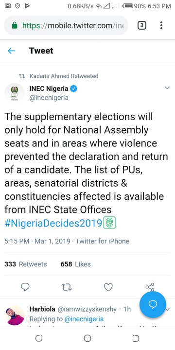 INEC has cleared the air about the Supplementary Elections. Only National Assembly elections would be repeated in areas where there were violence and disruptions.