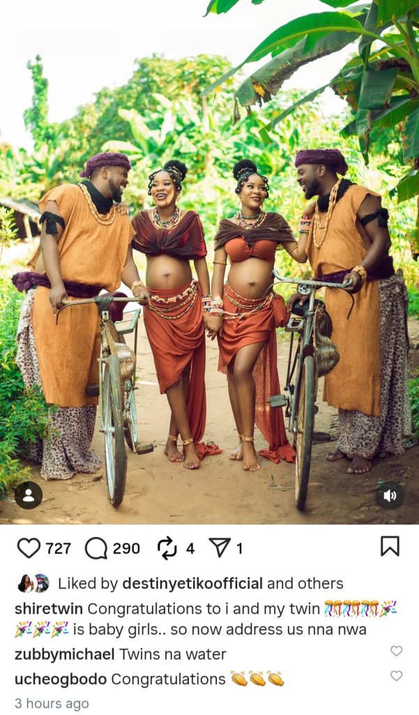 The Shire Twins, both Nollywood actors, shared photos and videos from their pre-wedding photoshoot.