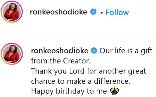 “Our life is a gift from the Creator. Thank you Lord for another great chance to make a difference. Happy birthday to me.”, she wrote.
