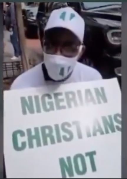 In a video seen by SaharaReporters, the African American man was shown in a video with a placard saying ‘Nigerian Christians Not Targets Of Genocide Or Ethnic Cleansing’.