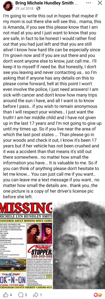 In 2018, Michelle Smith’s daughter made a post on Facebook, begging for her mother to reach out if she’s still alive.