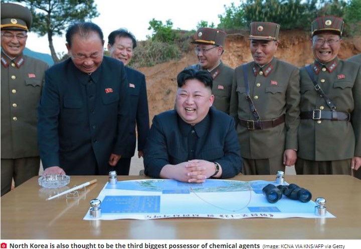 North Korea is supposedly the third biggest possessor of chemical agents, with 2,500-5,000 tonnes and 20 different types, the research adds.