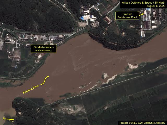 While there was further flooding downstream, it did not appear to reach the Yongbyon facility’s Uranium Enrichment Plant and by August 11 the waters appear to have somewhat receded, 38 North said.