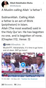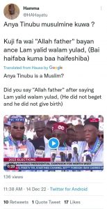 Bola Tinubu, the presidential candidate of the All Progressives Congress has been tackled by Northern muslims on Twitter.