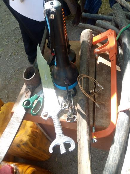 “In the course of investigation, two (2) big sacks each containing armoured cables (cut to size), one hacksaw, two (2) long daggers, one Scissors, three (3) big flash lights, two mask-caps and other breaking implements were recovered”