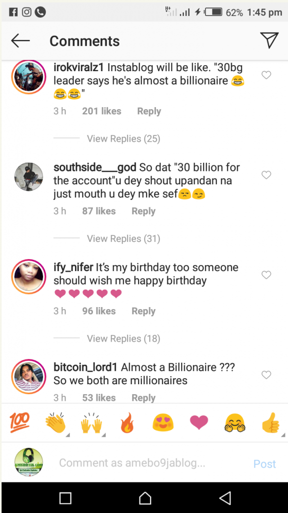 Nigerians reacts to Davido’s post claiming he’s almost a billionaire…
